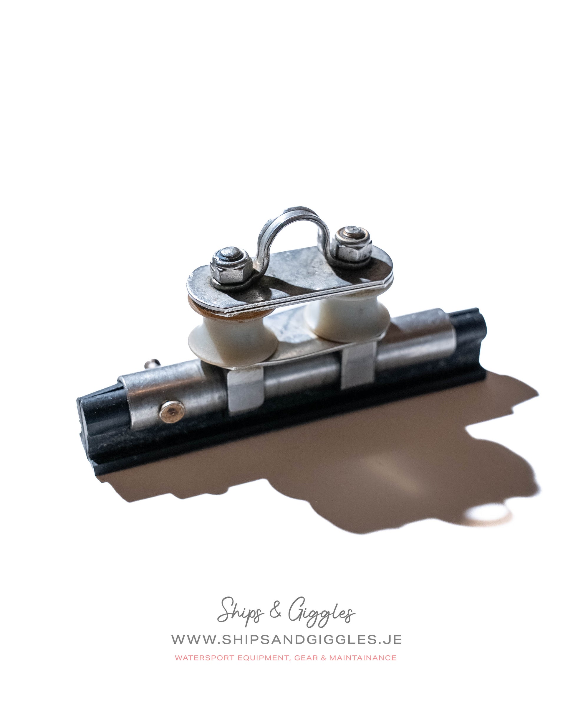 USED. Old style traveler car assembly for the mainsheet of Hobie 14, 16 and Getaway catamarans. Old style traveler car assembly (Pre-1994)